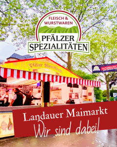 Vom 25. April bis 03. Mai 2026 ist die Kissel Hausmetzgerei Pfälzer Spezialitäten wieder auf dem Landauer Maimarkt vertreten. In der beliebten Fressgasse erwarten Sie